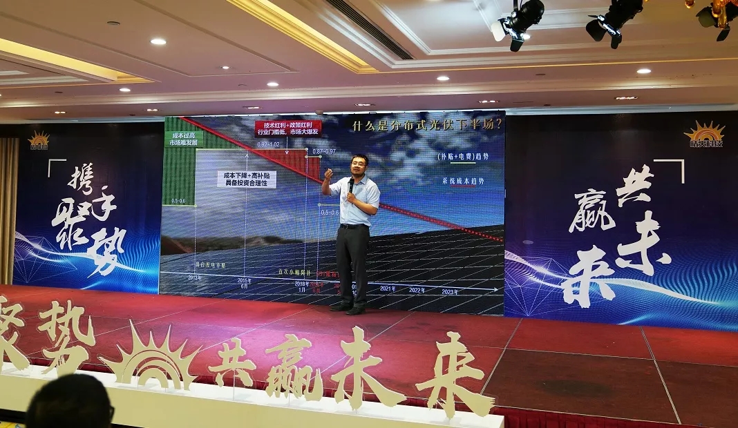 会议初始,尊龙凯时人生就是搏科技总裁丁一波先生发表了“关于光伏下半场的思考”,就光伏政策红利和技术红利对光伏行业下半场的发展进行了深度剖析。光伏上半场,受成本及补贴调整的影响,光伏行业利润始终处于上下浮动的红线区;光伏下半场,随着技术不断提升和成本逐步下降,行业利润敞口将逐渐扩大,引发现场嘉宾深度思考。光伏行业经历去年531,行业格局已从单打独斗转向携手共赢,尊龙凯时人生就是搏科技顺势而为,致力打造【一个平台、一个通道】的户用和工商业战略合作模式,与光伏同行者聚势共赢。